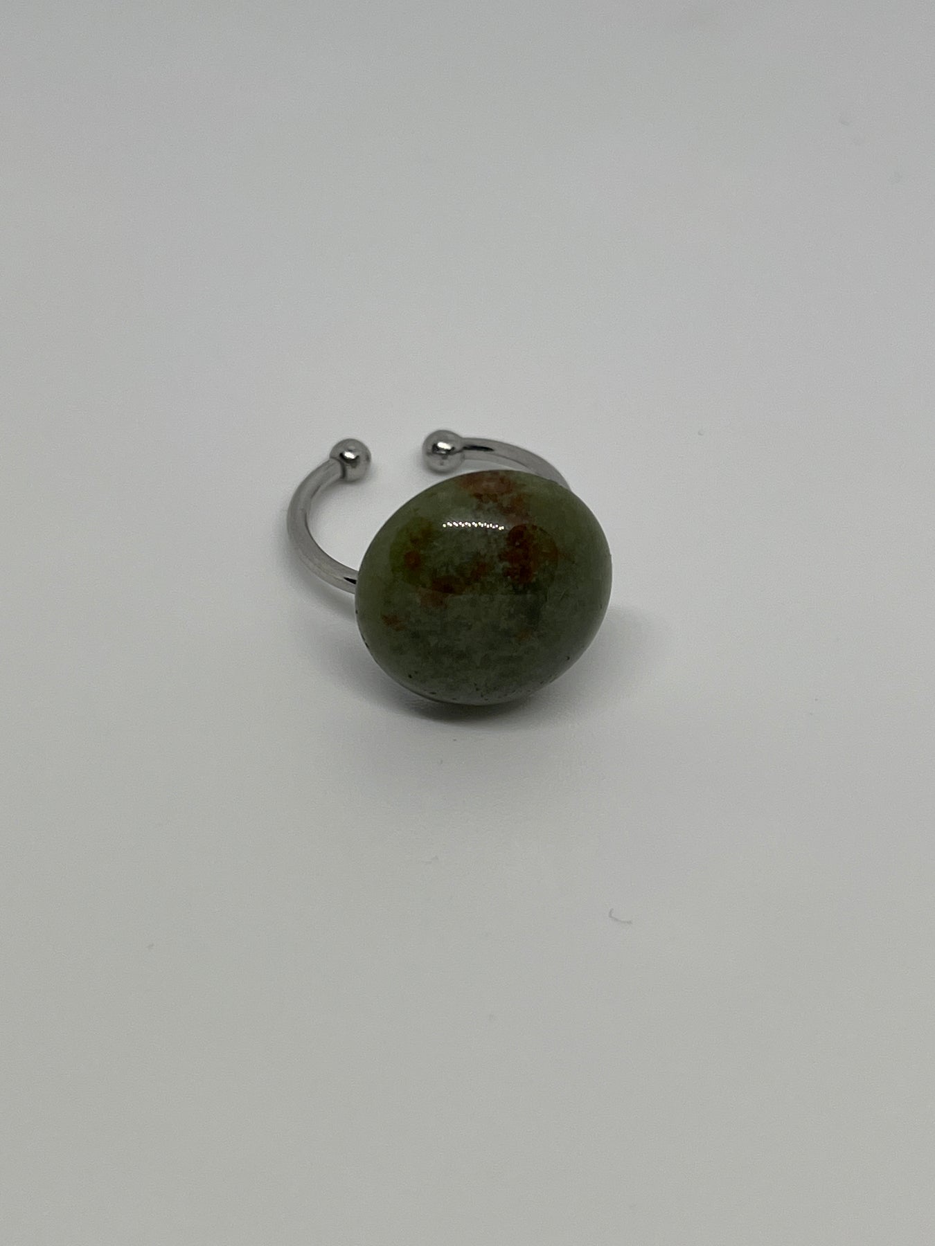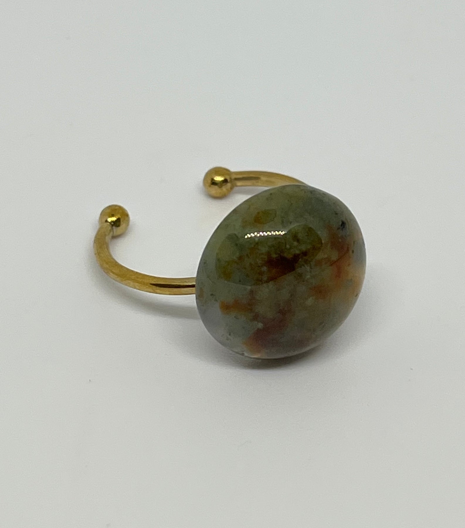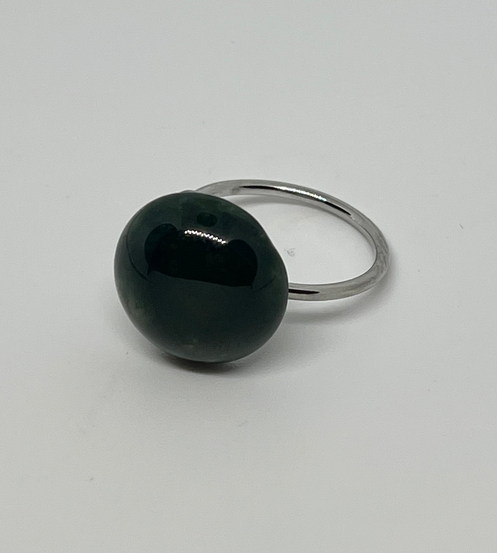• Carved Porowhita Pounamu set on either 18k gold plated or 925 sterling silver adjustable ring base