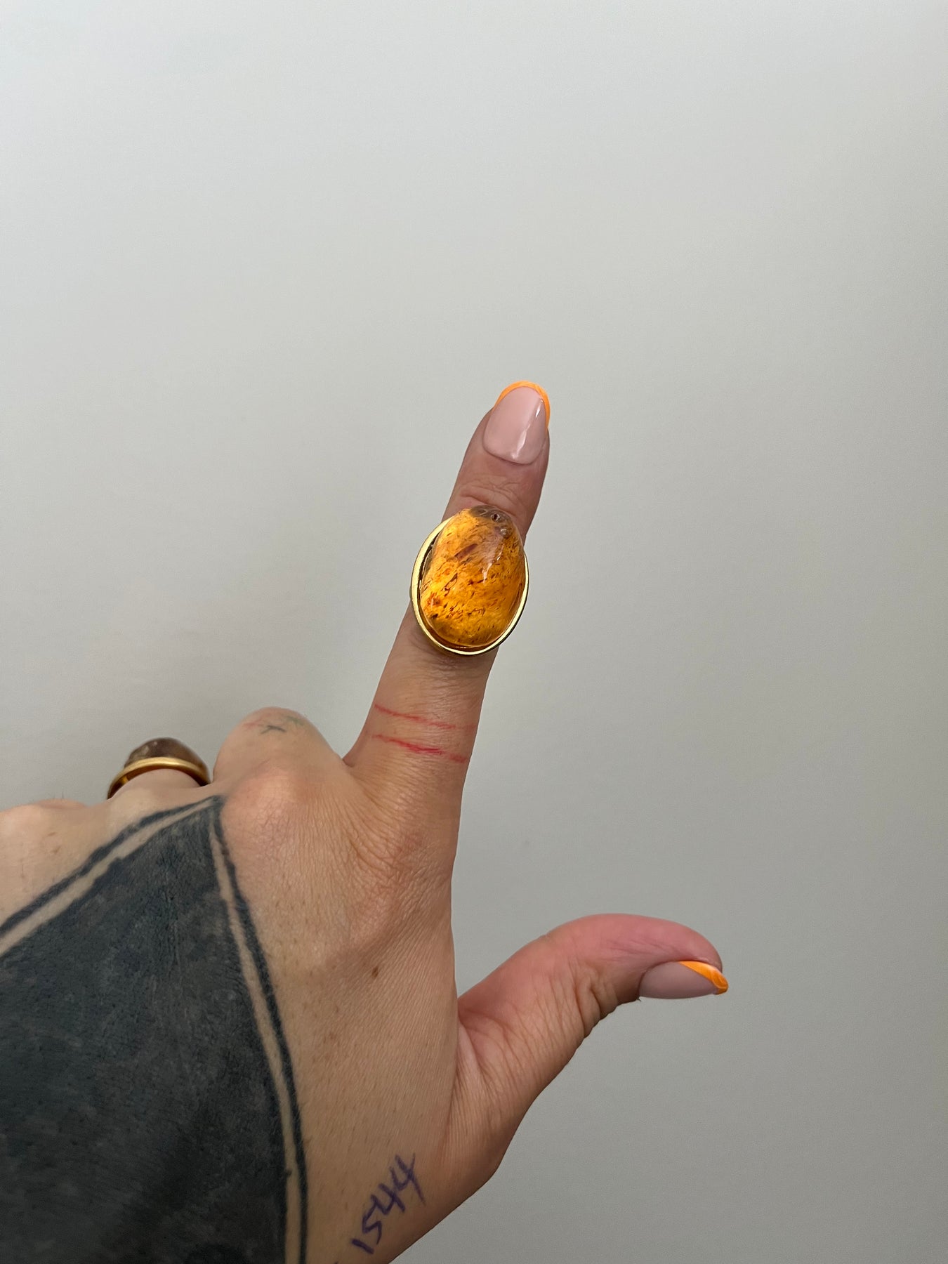 • 18k gold plated & adjustable small oval & large oval rīngi bases embedded with hand carved kāpia (Kāuri gum)