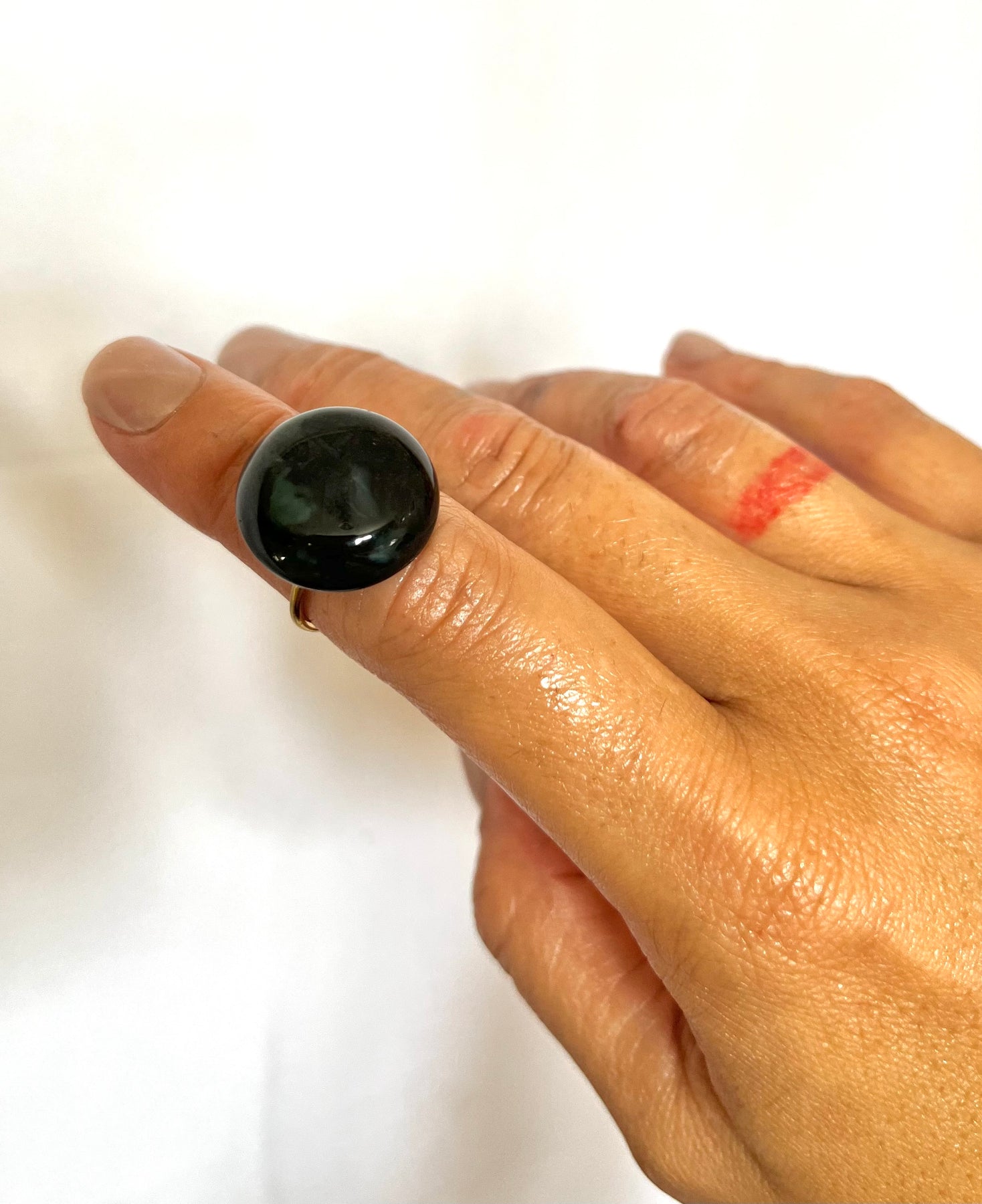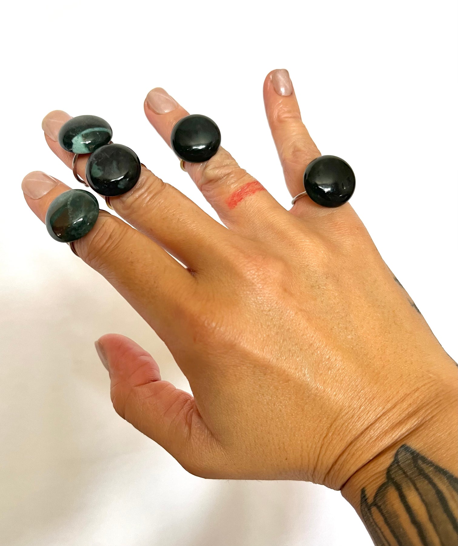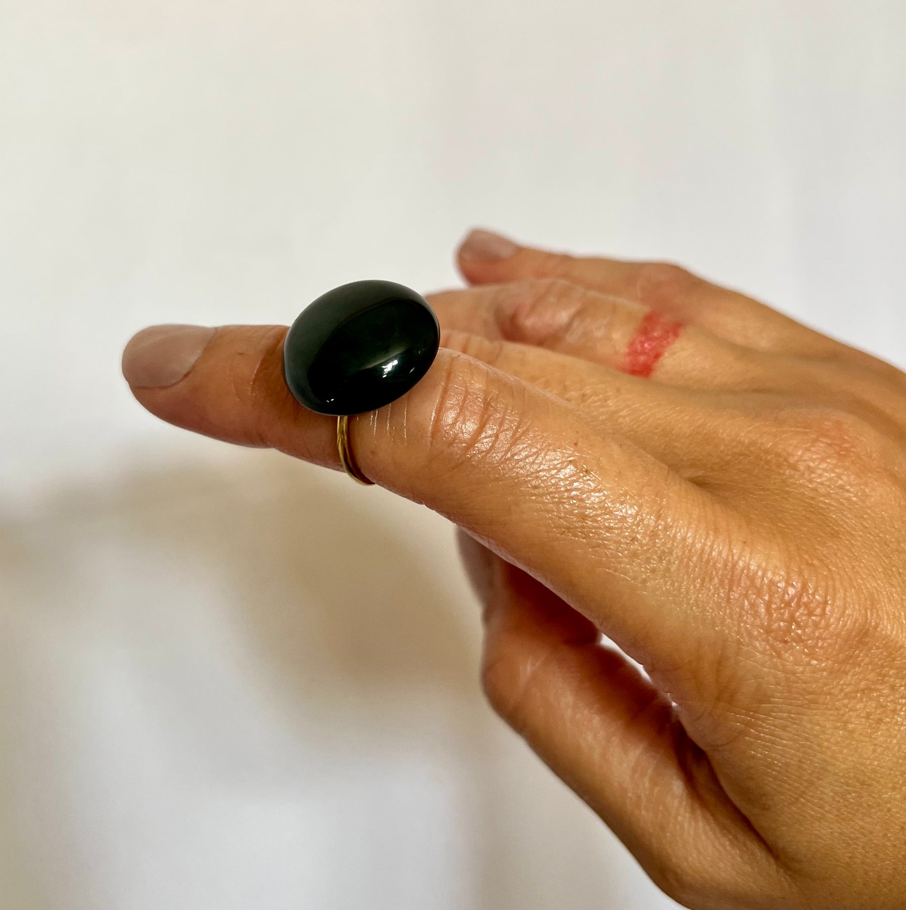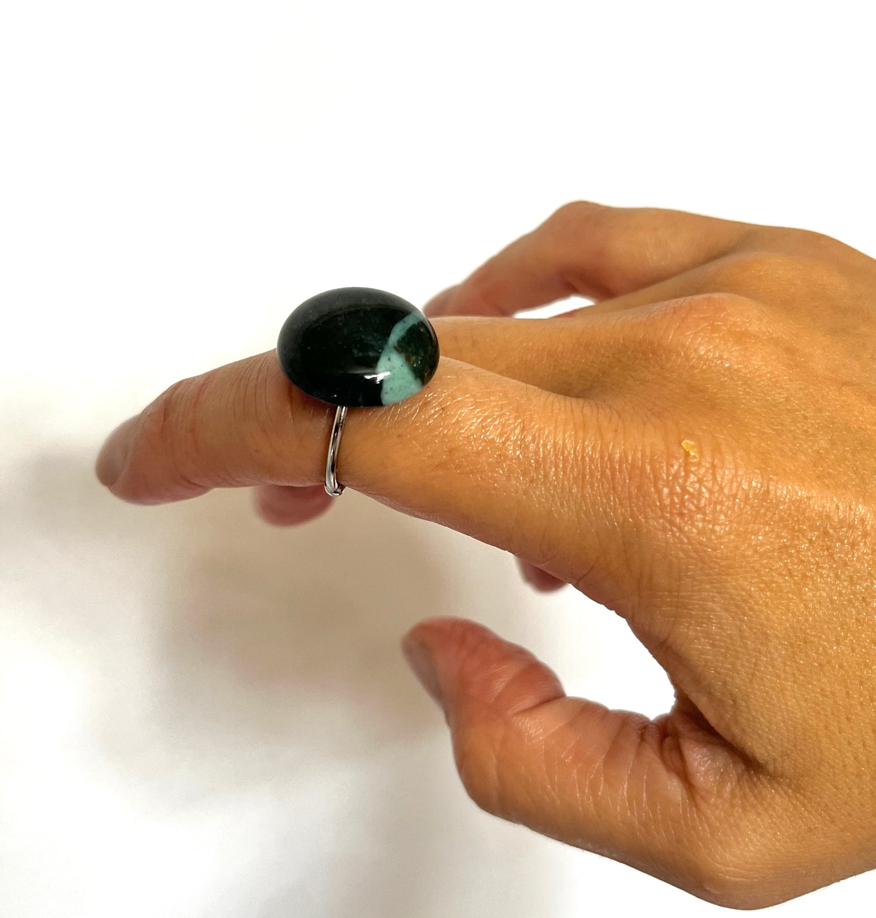 • Carved Porowhita Pounamu set on either 18k gold plated or 925 sterling silver adjustable ring base