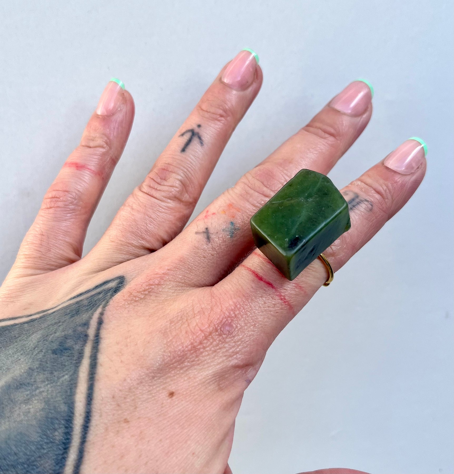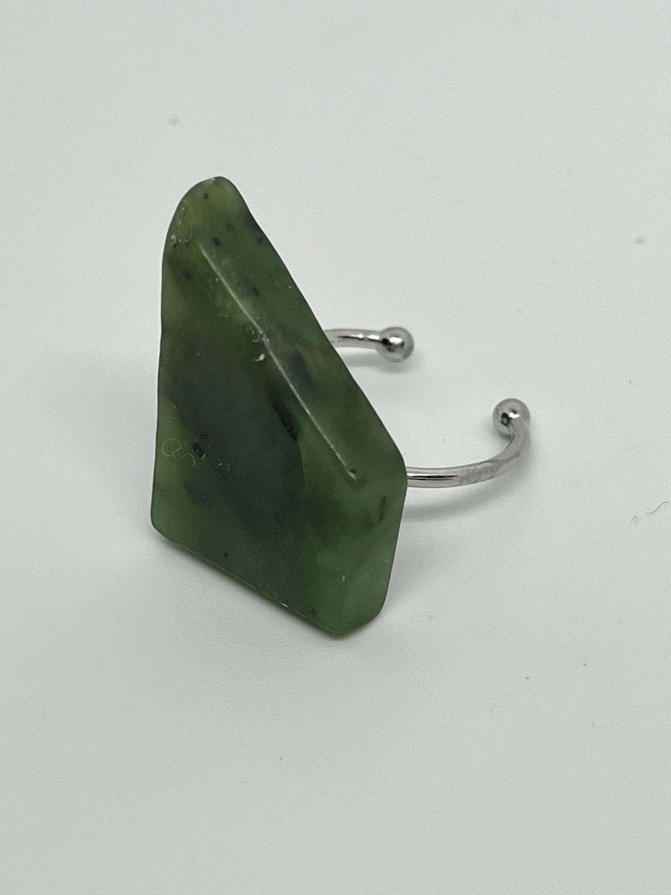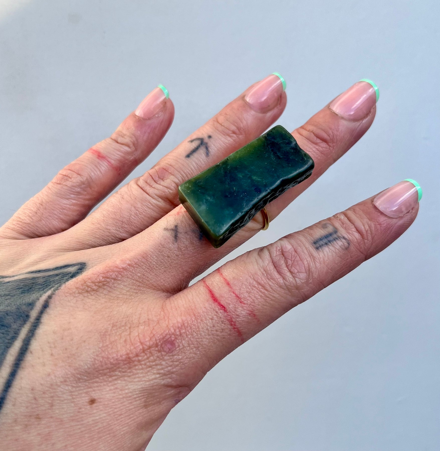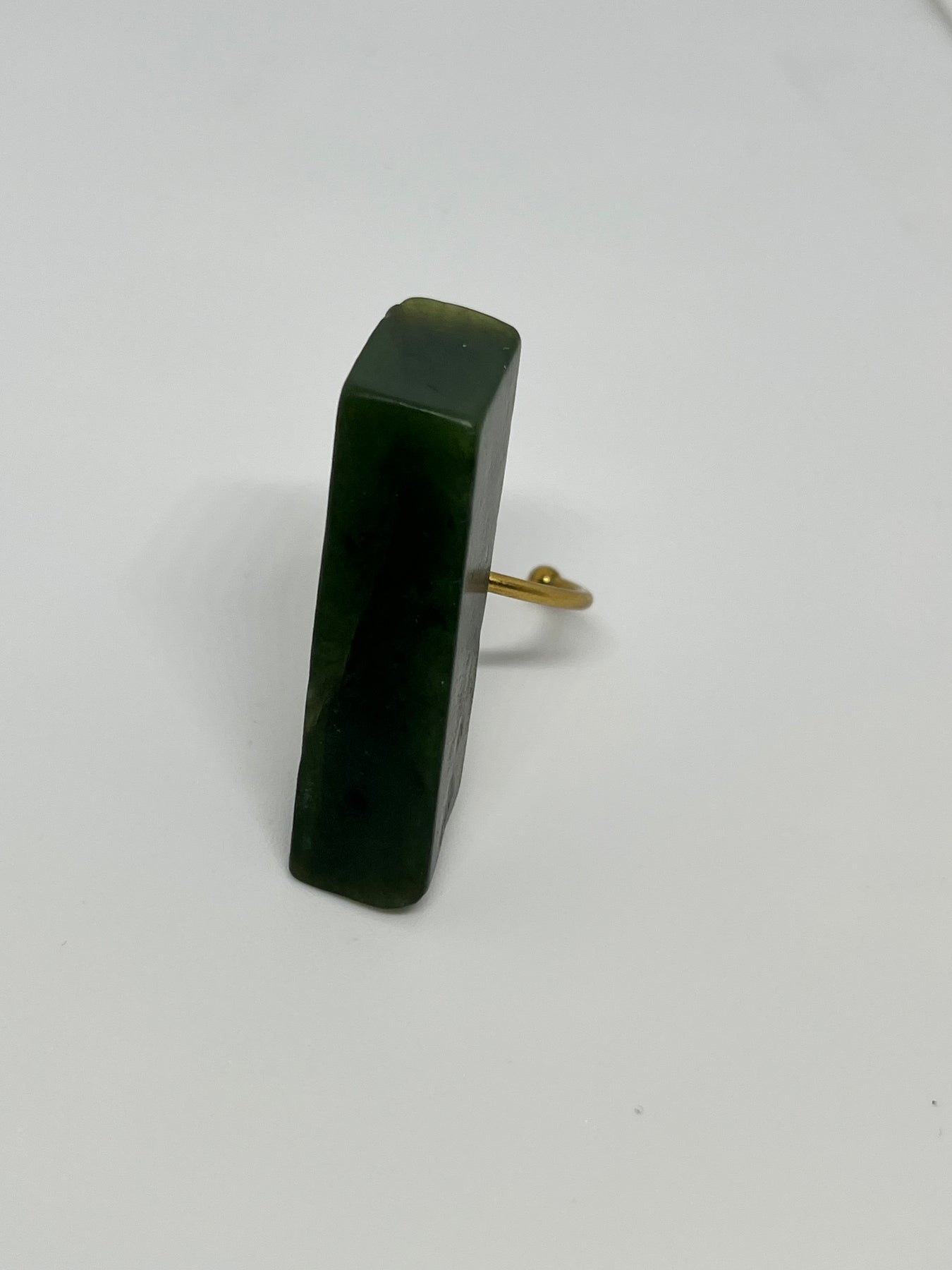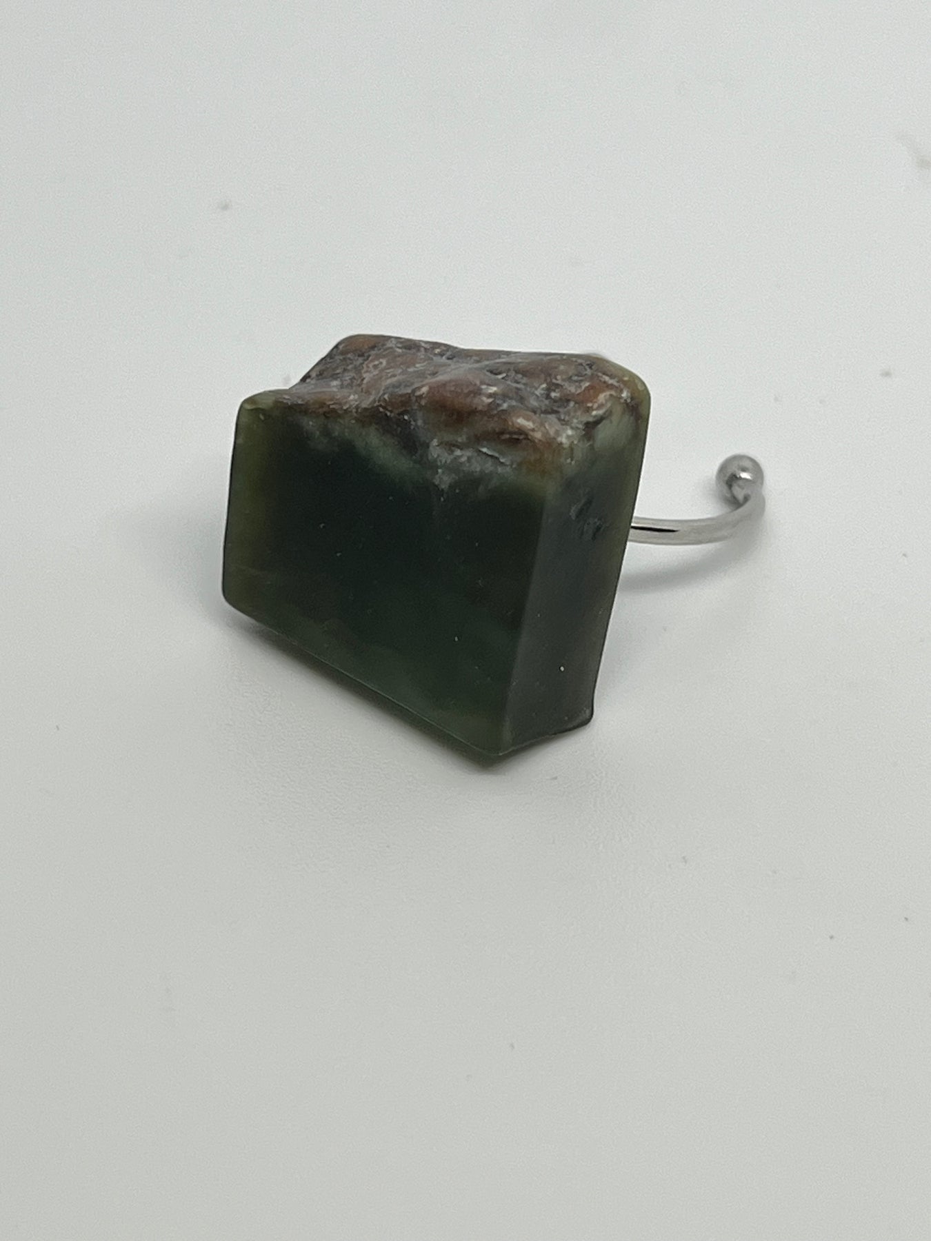 • Raw and lightly tumbled NZ Pounamu bulky chunks set on 925 or 18k gold plated rīngi bases