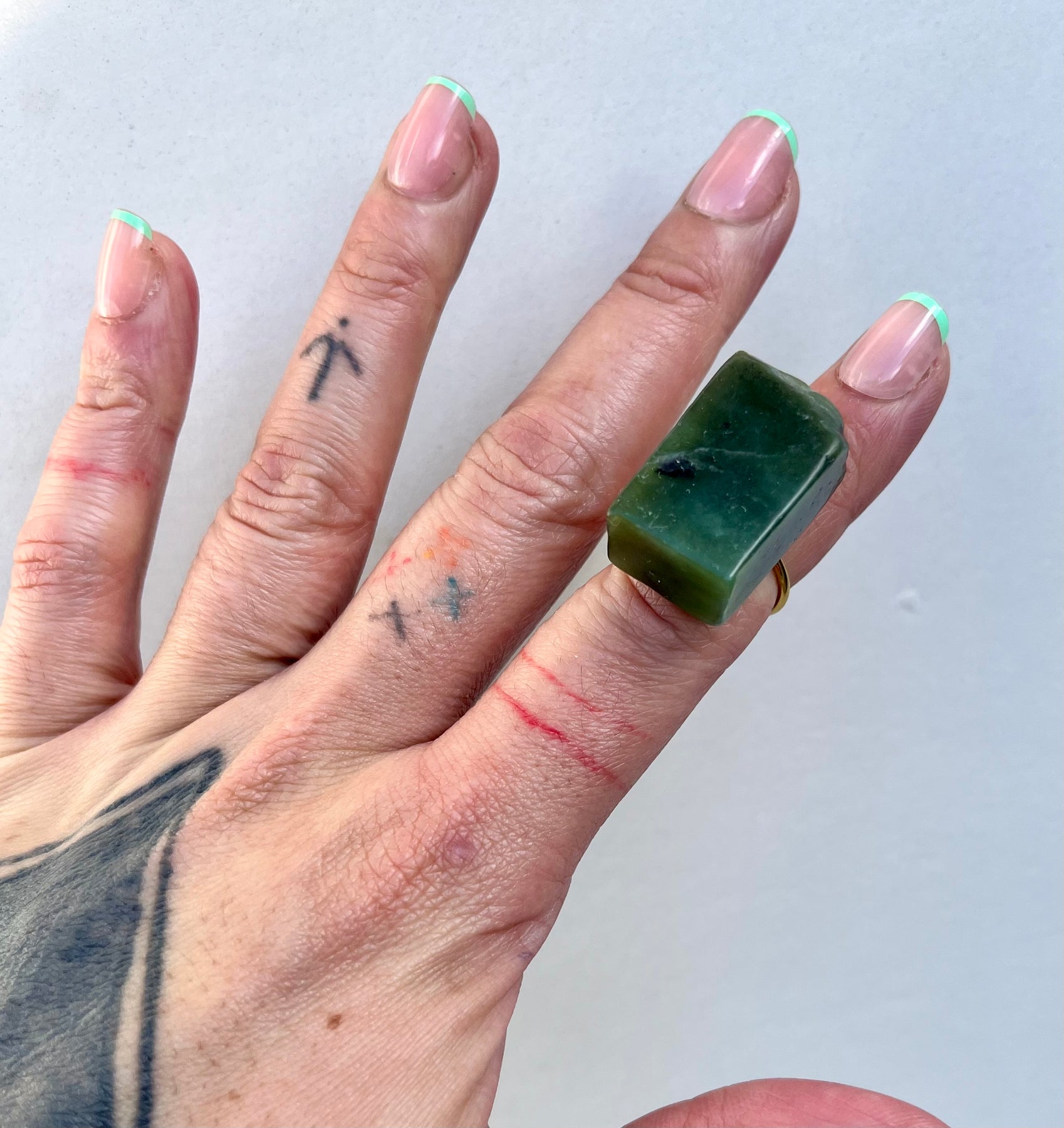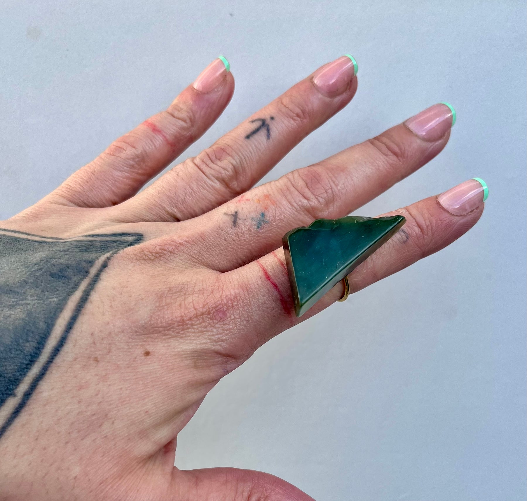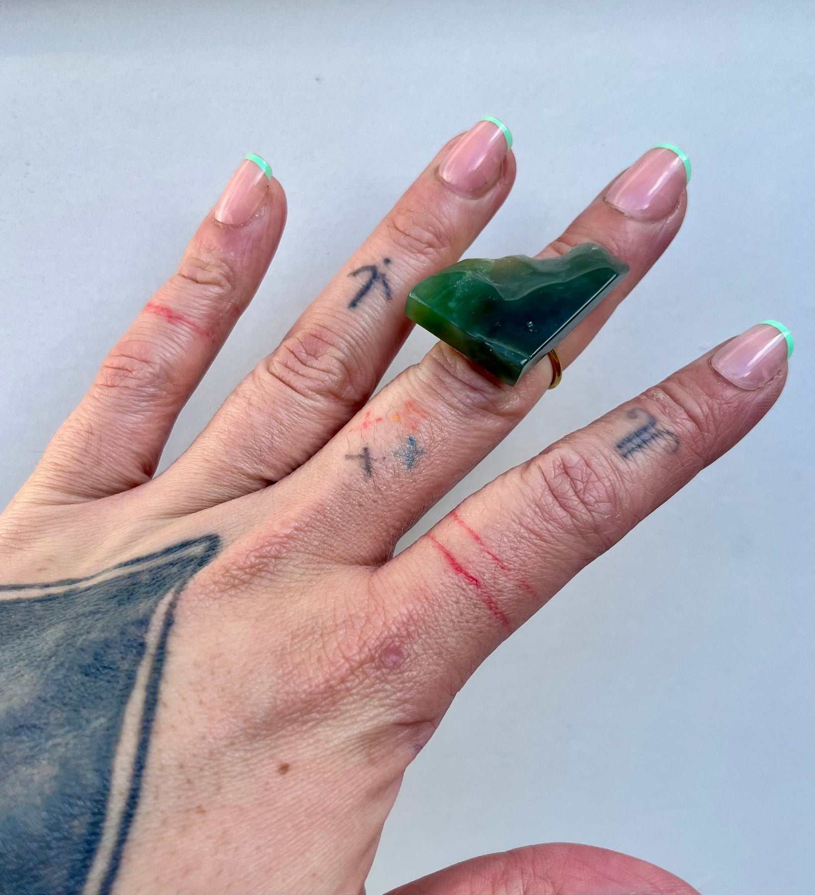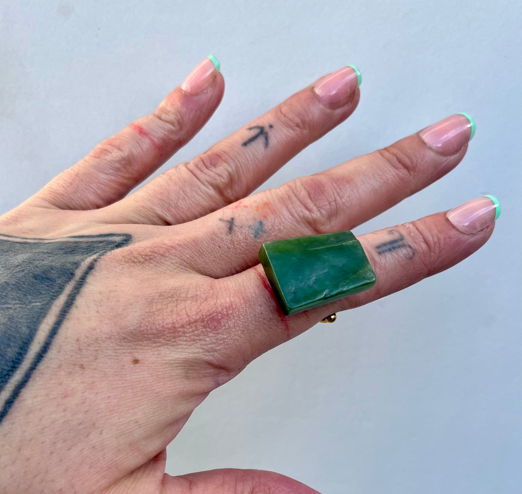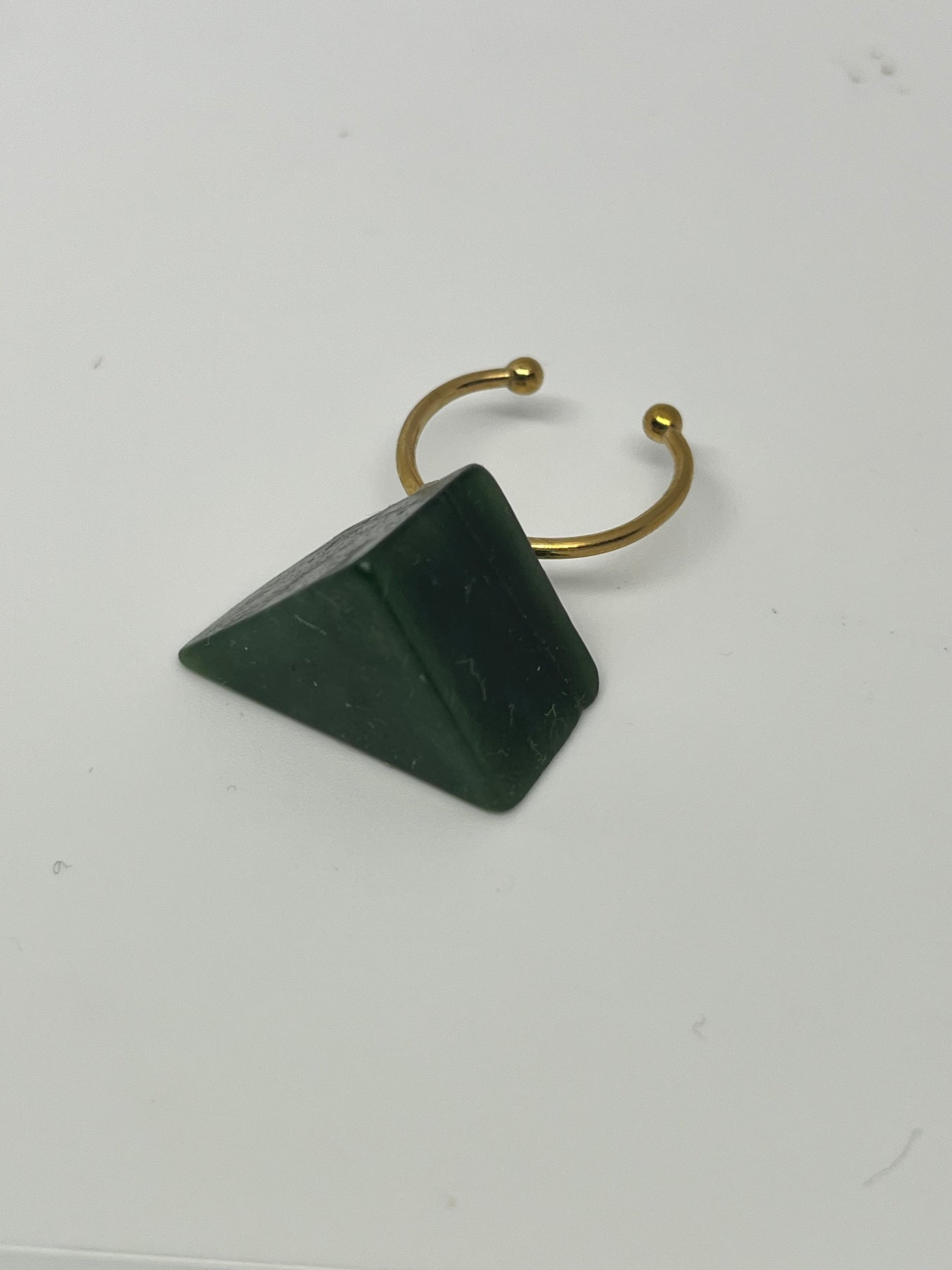 • Raw and lightly tumbled NZ Pounamu bulky chunks set on 925 or 18k gold plated rīngi bases